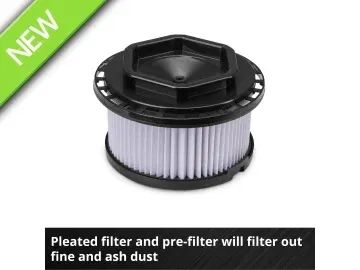 Its four swivel castors and handy carrying handle make it easy to transport. With the 2m long power cord and 1.2-metre-long suction hose (diameter 36mm), you can easily reach every corner, ash and fine dust have no chance. The additional pre-filter ensures even better filtration and also prevents rapid clogging of the pleated filter.