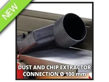 Due to the provided height adjustment of up to 3mm for dressing and 2mm for thickness planing, the material removal can be finely adjusted by the hand crank. The planer is supplied with two durable HSS quality planer blades. With an opening height of up to 120mm and an opening width of 204mm, the planer is suitable for machining boards, strips or smaller beams. In order to keep the workplace clean, for example, a suction system can be connected to the Ø 100mm suction adaptor.
