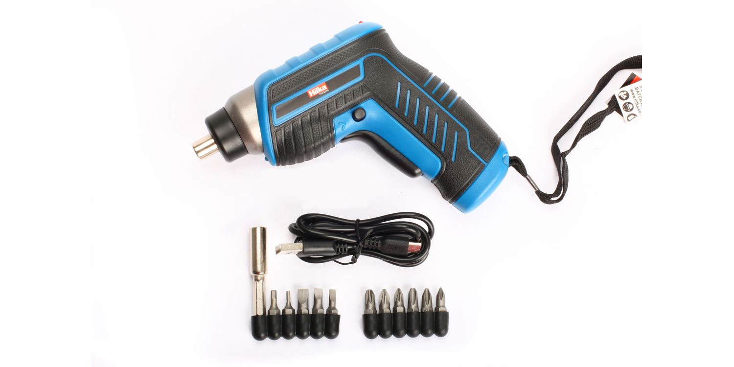 Cordless screwdriver with forward/reverse function. Compact and lightweight, ideal for tight areas with ergonomic soft grip handle. Li-ion technology offers long run time between charges. Ideal for screw driving tasks around your home with LED work light. Supplied with 11 popular 25mm bits, 1 magnetic bit holder and USB charger. Specifications: DC 3.6Volts (Li-ion, 1300mAh) No-load speed: 180RPM Max torque:3N.m Forward/reverse function LED work light Charging time: 3-5 hours