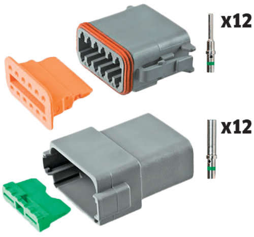 Contains: 1x 12-way male and 1x 12-way female connector, 12x male and 12x female pins and 1x male and 1x female wedge.