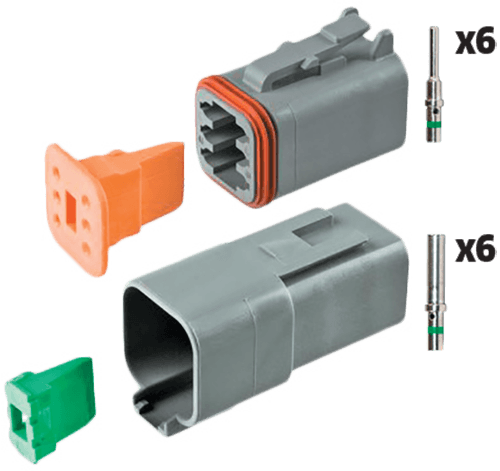 Contains: 1x 6-way male and 1x 6-way female connector, 6x male and 6x female pins and 1x male and 1x female wedge.