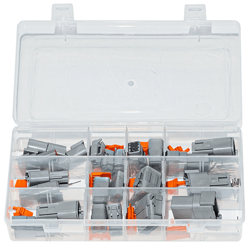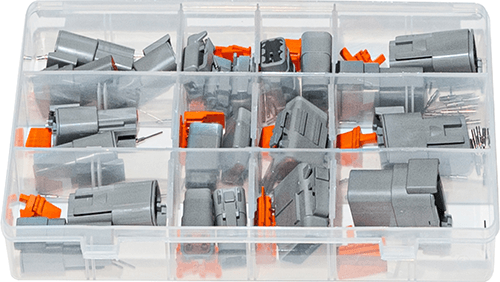 Kit contains: 2 pin, 3 pin, 4 pin, 6 pin, 8 pin, 12 pin, plus wedges, locking plates, blanking stems plus male and female terminals.