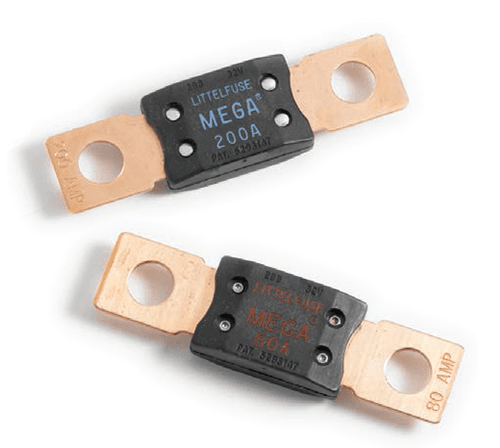 Bolt-down fuses. Voltage Rating: 32 VDC. Complies to ISO 8820-5