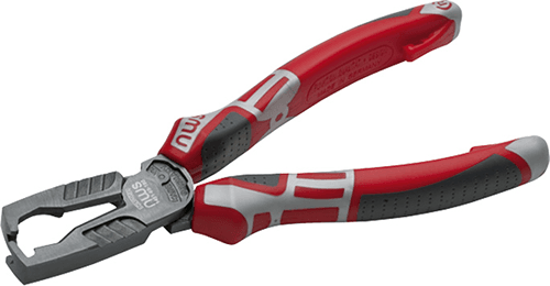 • V-shaped cutting edges for stripping of wires and stranded conductors.