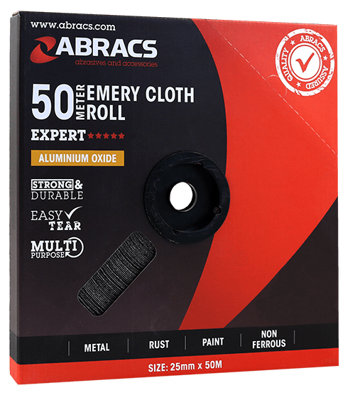 Supplied in handy, easy to use dispenser packaging. Premium quality aluminium oxide grain bonded to strong yet easy to tear J-weight cloth backing. Designed for general maintenance work, rust removal, sanding and polishing.