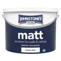 Johnstone's Brilliant White Matt Emulsion is a high quality emulsion for walls and ceilings and will help you to breathe new life into your homes. This paint features a water based formulation that is quick drying, high opacity and has low odour. This paint will give your walls a smooth, matt finish for an ultra-modern, sleek appearance and long-lasting finish.