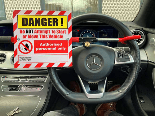 • The sign is an integral component of the key locked steering wheel immobiliser to prevent unauthorised removal