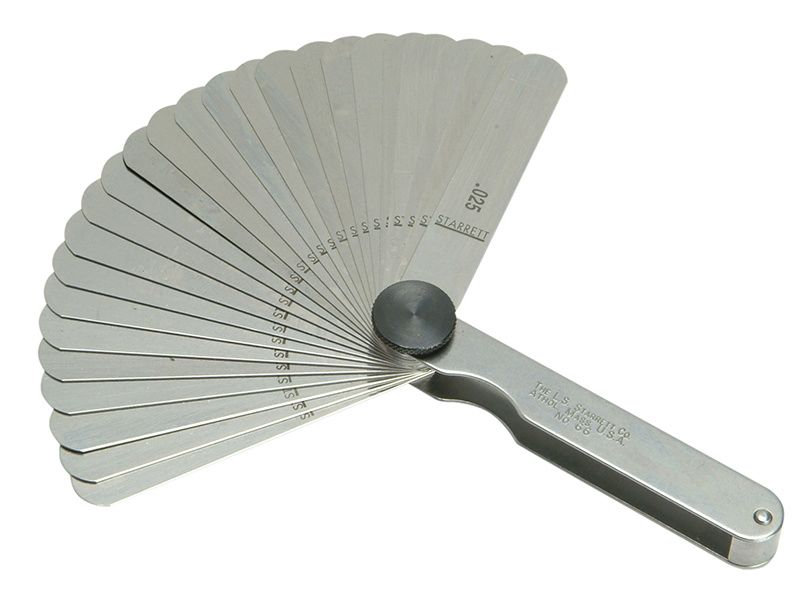 Used to adjust tappets, spark plugs, distributor points, checking bearing clearances and gear play, fitting pistons, rings and pins and gauging narrow slots. Leaves are tempered steel, easily removed and replaced. Locking device on all sets.