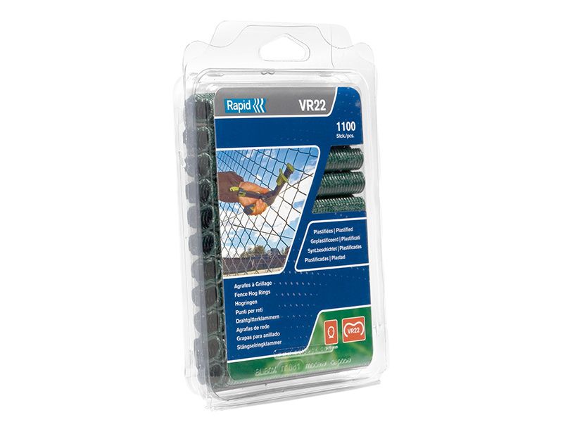 Rapid VR22 hog rings are made from galvanised steel and are designed for use with the Rapid FP20 and FP222 Fence Pliers. Please check your fence pliers for compatible sizes.