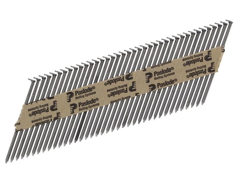 Paslode IM360 Nails have a clipped head with a diamond point for easy insertion. The bright finish meets the Eurocode 5 requirements for applications in service class 1 (indoor) areas. No coating. Patented paper strip collation, eliminates paper residue under the nail heads and prevents damage to your Gas Framing Nailer.