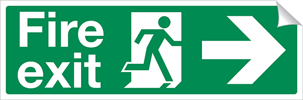 This Fire Exit Right Sign is used to indicate the presence of a fire exit, making it easy to notice in case of an emergency. Designed to be used in a wide variety of situations, it is clear and legible and signifies the direction of the fire exit.