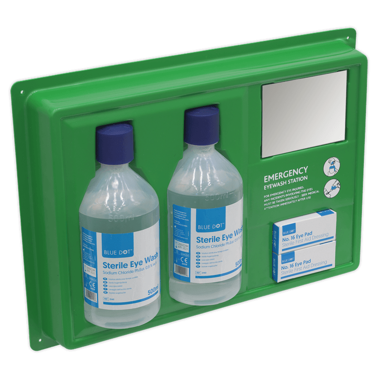 | Contents | 500ml Saline Solution Bottles (x2), Sterile Dressing Eye Pads (x2) |