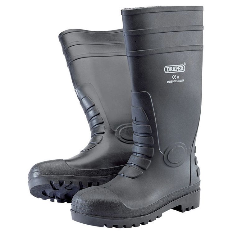 General work wear wellington boots with steel toecap and stainless spring steel midsole ideal for site work. 100% polymeric moulded boot and entirely waterproof.