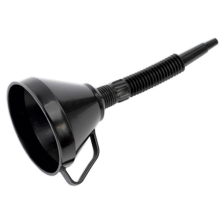 The Sealey F6 Funnel features a removable, flexible spout and practical side handle for ease of use and is made from durable polyethene material which is resistant to oil, fuel and some acids. This product is supplied with an internal mesh filter.