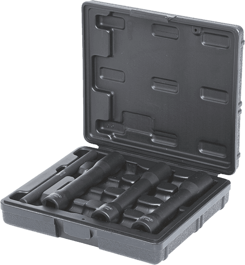 Chrome molybdenum steel, phosphate finish. Tool length: 145 mm. For use with an impact wrench. Supplied in a robust plastic storage case.