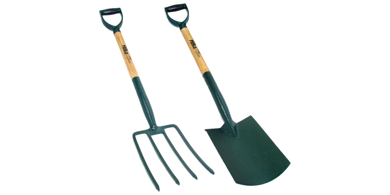 2 piece digging fork and spade set. Ergonomic soft grip handle and hardwood shaft with forward tilt handle giving the ideal digging angle. Heat treated carbon steel head for increased strength and longevity. Powder coating provides greater protection against rust and scratches.