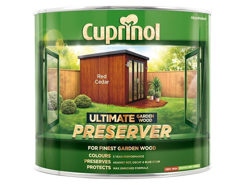 Cuprinol Ultimate Garden Wood Preserver has a superior, water-based formulation that works in 3 ways. Its UV filters give long lasting colour for up to 5 years, added waxes and resins provide advanced weather protection and active ingredients penetrate deep into the wood to protect against rot, decay and blue stain.