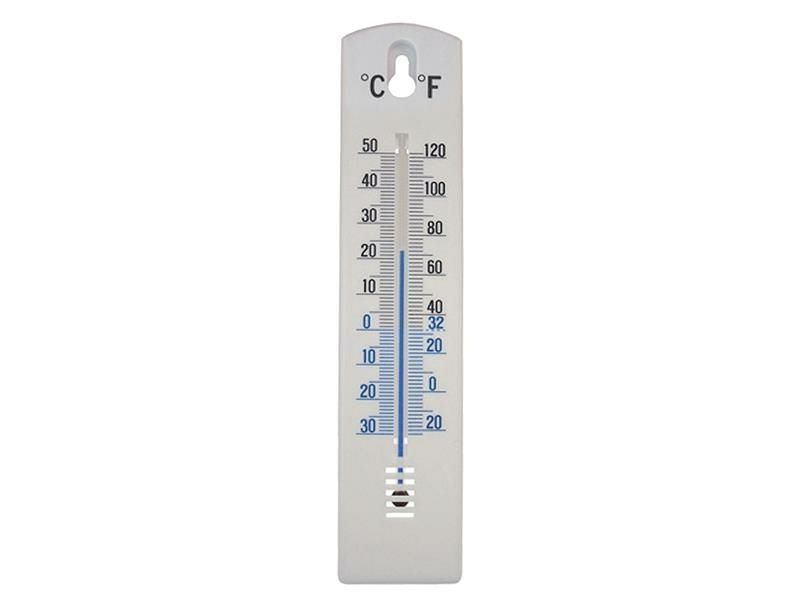 This Faithfull Wall Thermometer is mercury free. A simple white plastic wall thermometer for everyday use in and around the home and garden. It measures temperature in both Celsius and Fahrenheit and is suitable for indoor or outdoor use. It is also ideal also for checking the temperature of fridges.