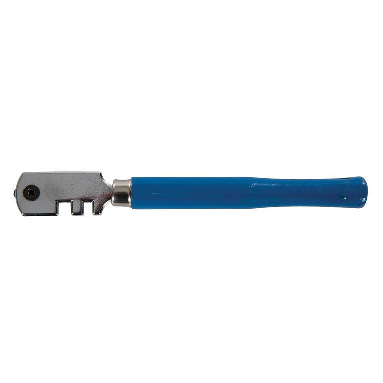 Rotating turret features 6 x tungsten-carbide cutting wheels for prolonged tool life. Cutting head includes 2 x chromed snap-off vices. Smooth, contoured handle for comfort. Cuts glass up to 4mm thick. Rotate turret for new cutting wheel.