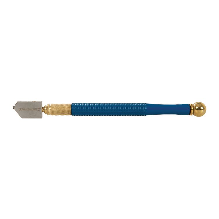 Tungsten-carbide cutting wheel. Durable alloy body with internal oil reservoir and knurled-brass finger grip. Spring-loaded block controls flow of lubricant. Includes filling pipette.