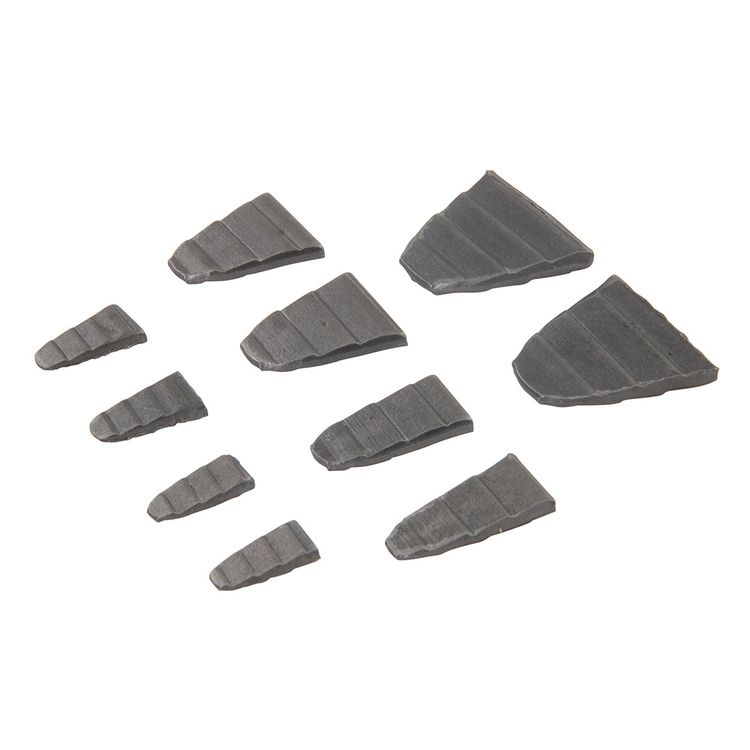 Steel wedges for fixing wooden handles to hammers, axes and mauls. V-shaped with wavy profile. Includes 2 x No 1, 2, 3, 4 and 5 wedges.
