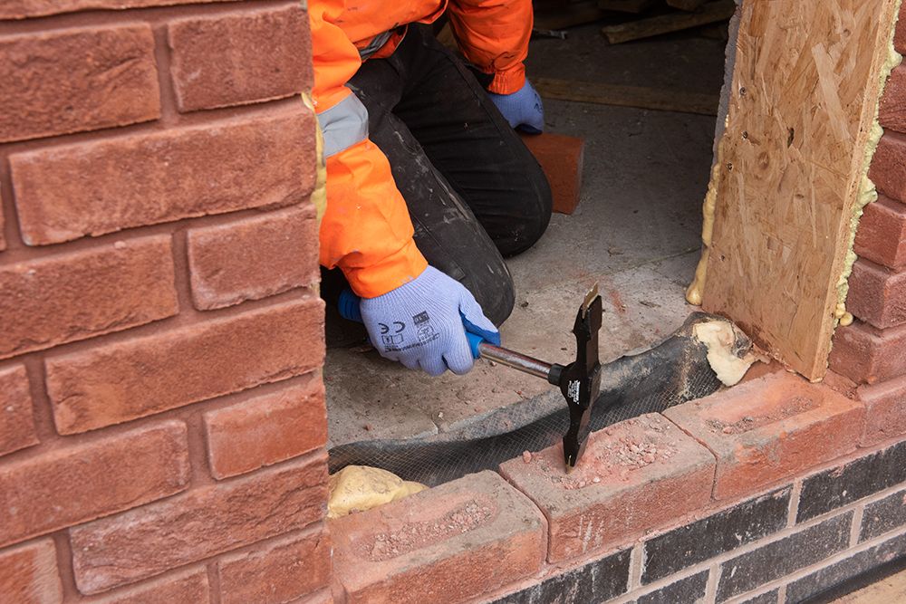 Forged steel head and chrome-plated tubular steel shaft. Powder-coated head. High-grip handle is resistant to oil and chemicals. For cutting and shaping masonry.