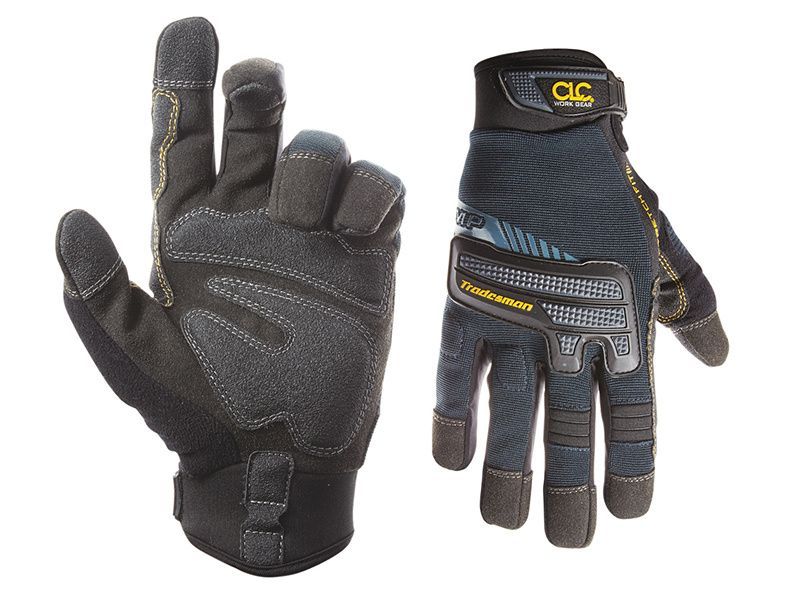 The Kunys CLC 145 Tradesman Flex Grip® gloves have a Syntrex™ synthetic palm material for increased abrasion and tear resistance. With reinforced padded palm and fingertips for enhanced wear and durability. Padded fingers and knuckles which provide protection against bumps.