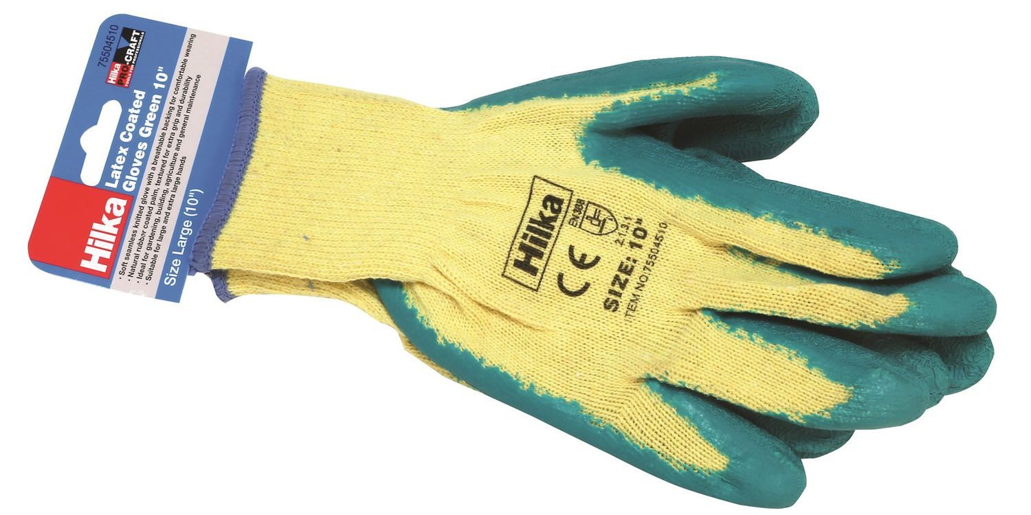 Hilka Large 10" Green Latex Coated Work Gloves