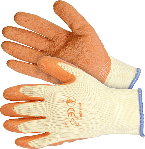 Latex coated palm. 10 gauge poly cotton and seamless liner.