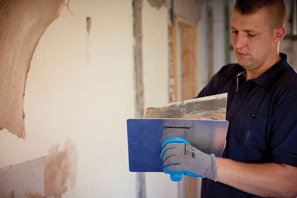 Heavy duty construction for general usage. 10-gauge polycotton shell and latex-dipped palm. Abrasion and puncture resistant. Supported glove, anatomical design, crinkle finish and knitted wrist. Intermediate design.