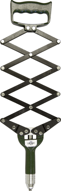 Complete with interchangeable nose piece. For 2.4, 3.2, 4.0 and 4.8 mm rivets.