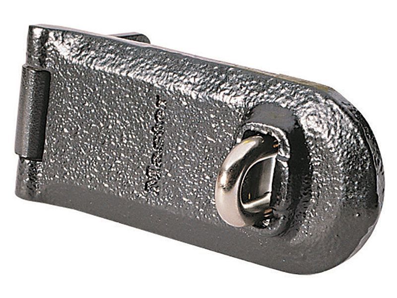 The Master Lock No. 723EURD Hasp features a zinc plated cast steel hasp provides added strength and protection from the elements. Its ribbed hasp plate offers extra strength, and hardened boron alloy staple offers maximum protection against cutting and sawing.