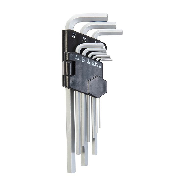 High grade hardened steel with satin plated finish. Ball end provides 15° angled access. Manufactured to DIN911. Supplied in plastic holder. Includes 1/16", 5/64", 3/32", 1/8", 5/32", 3/16", 1/4", 5/16" and 3/8".