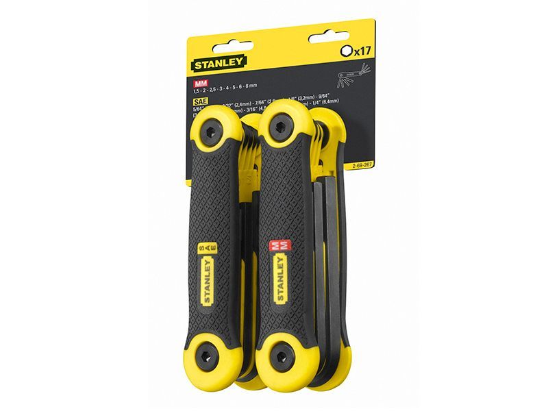 A folding hexagon 17-piece metric and imperial key set.