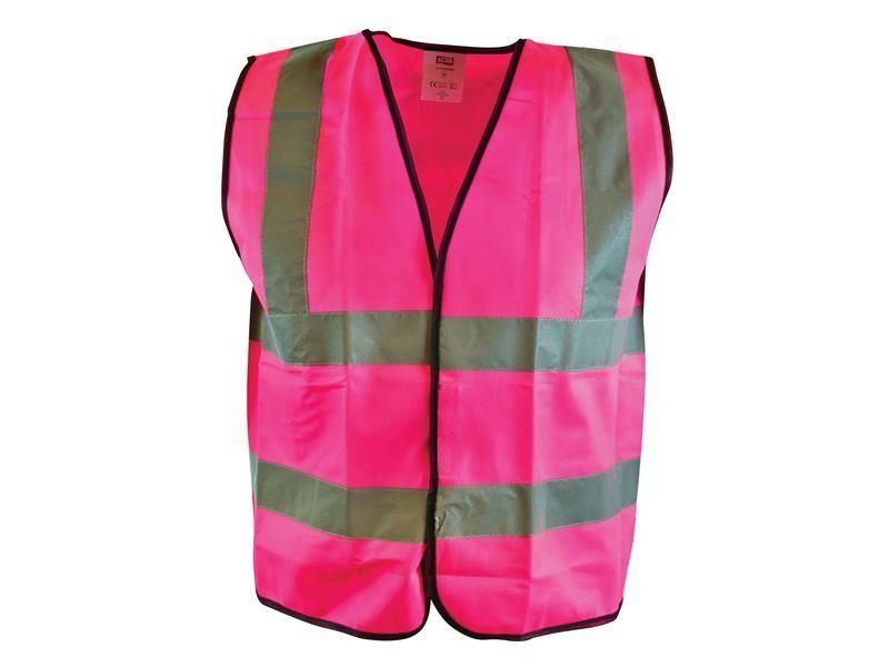 Scan High-Visibility Pink Waistcoat with panels which reflect light to maximise visibility, particularly during the hours of darkness. Made from 100% polyester with retro-reflecting tape absorbs and reflects light and finished with black bound edging and hook and loop strip for front fastening.