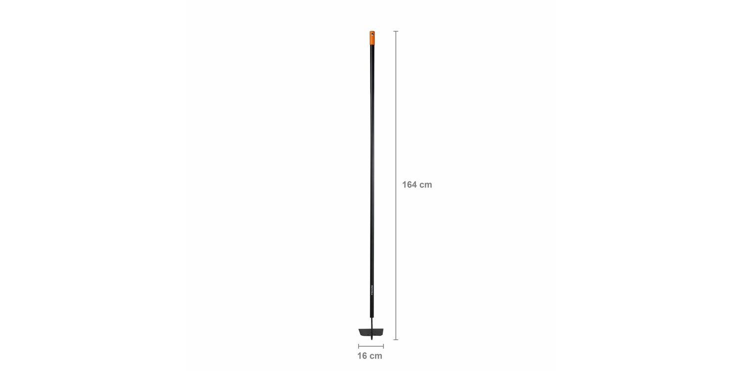 The Fiskars 135713 Solid™ Hoe has a hardened carbon steel blade for breaking up the soil and removing weeds between rows of plants. The rounded aluminium shaft makes it extremely durable, and lightweight.