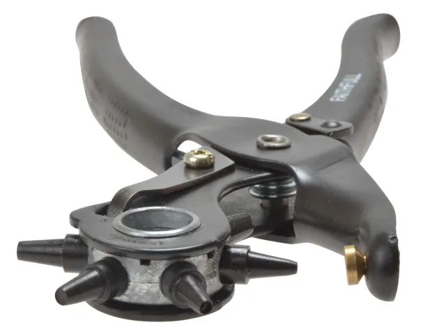 The Faithfull Revolving Punch Pliers are used for making holes in soft materials such as canvas, leather, soft plastics and textiles. Punch pliers are made from hardened heavy gauge sheet metal with an epoxy coating to protect against rust.