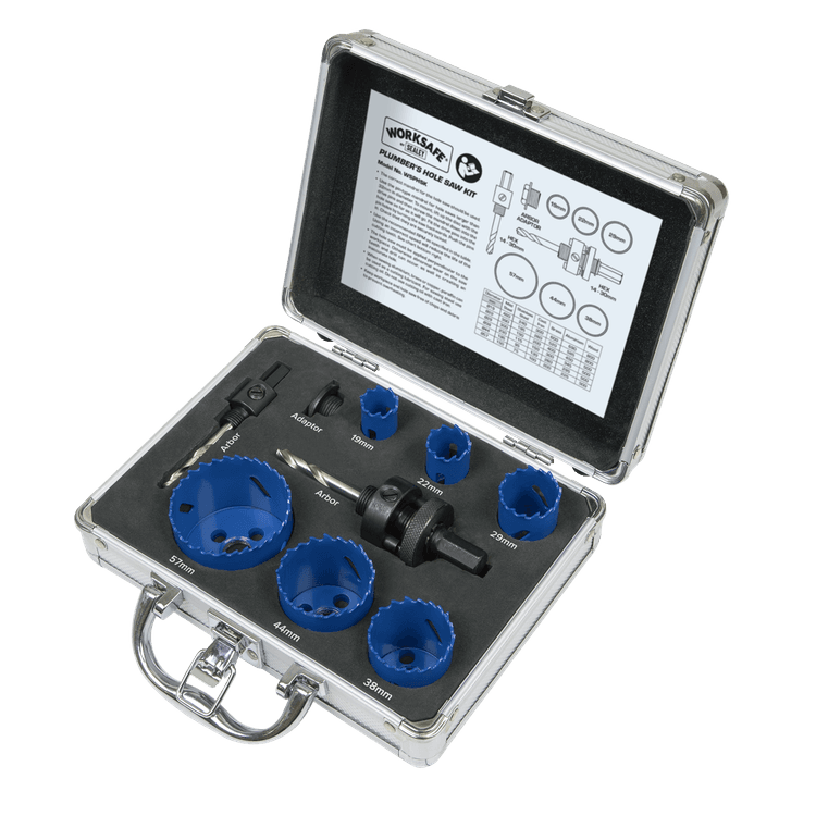 | Contents | Hole Saws (1 of each); Ø19, 22, 29, 38, 44, 57mm; 1 x Simple Arbor, 1 x Quick Release Arbor, 1 x Adaptor. |
