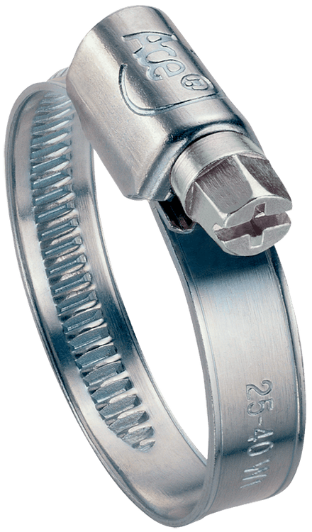 Band, housing and screw: zinc plated mild steel. DIN 3017.