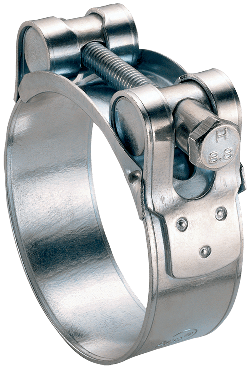 Screw: zinc plated mild steel. Band and housing: 17C INOX (AISI 430). Hexagonal head.