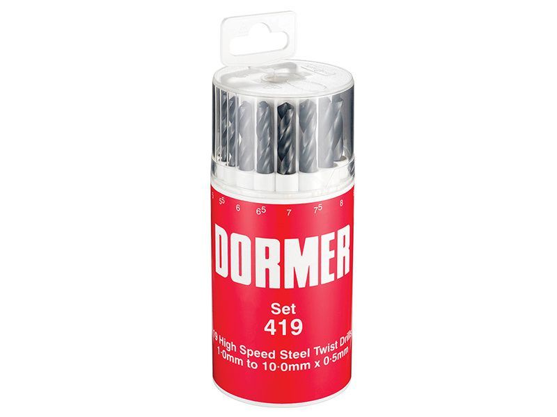 Dormer A191 HSS Metric Jobber Drills in plastic case with each size embossed for ease of identification.