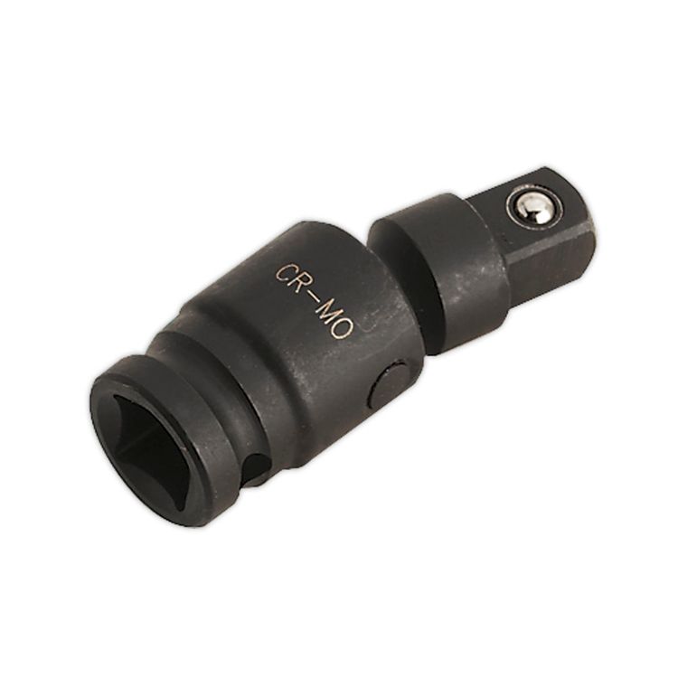 The Sealey AK5500 Impact Universal Joint is suitable for use on all types of air impact tools. Manufactured from drop-forged Chrome Molybdenum steel, this joint features a phosphate finish for added corrosion resistance and contains a spring-ball socket retainer and drilled head to accept the retaining pin.