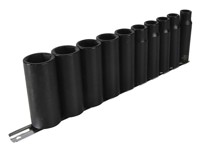 This Teng Deep Impact Socket Set is manufactured from top grade chrome molybdenum alloy steel in accordance with GGG-W-660A to give top quality, professional sockets. The set contains 10 deep metric ½ inch drive 6-point impact sockets supplied on a clip rail.