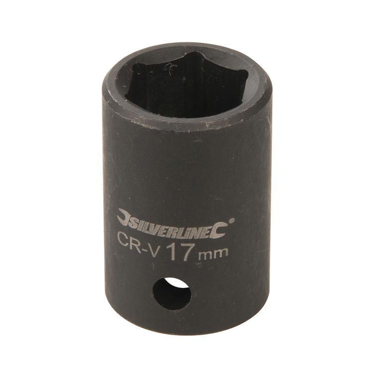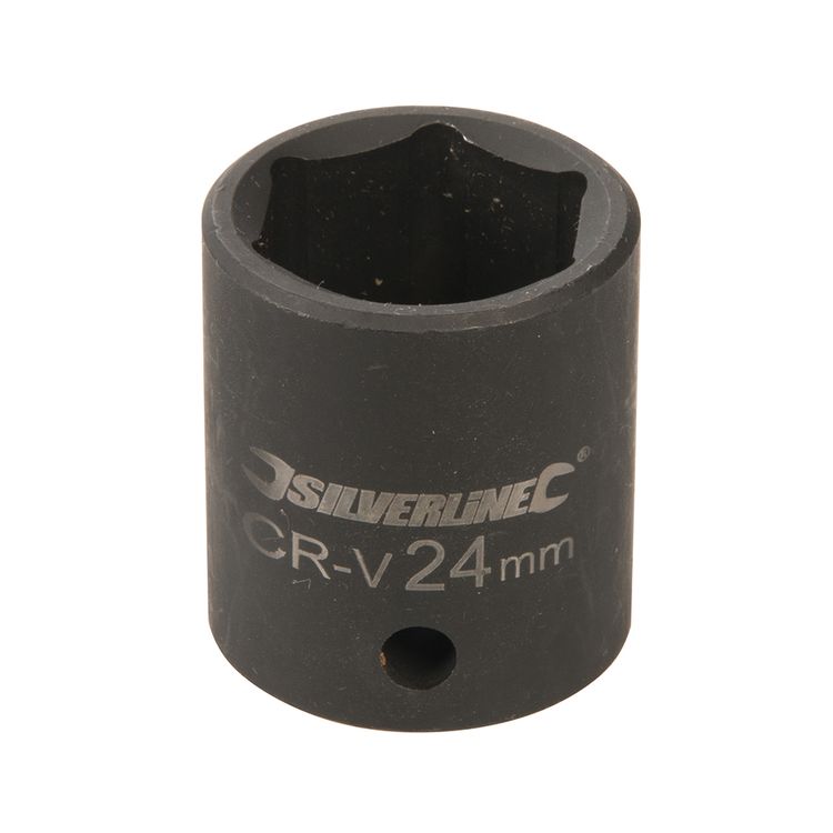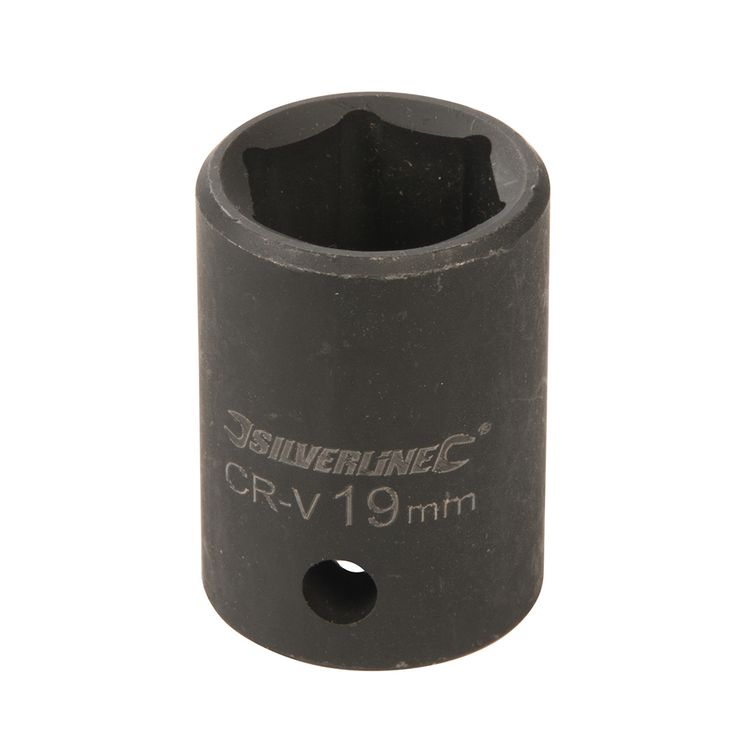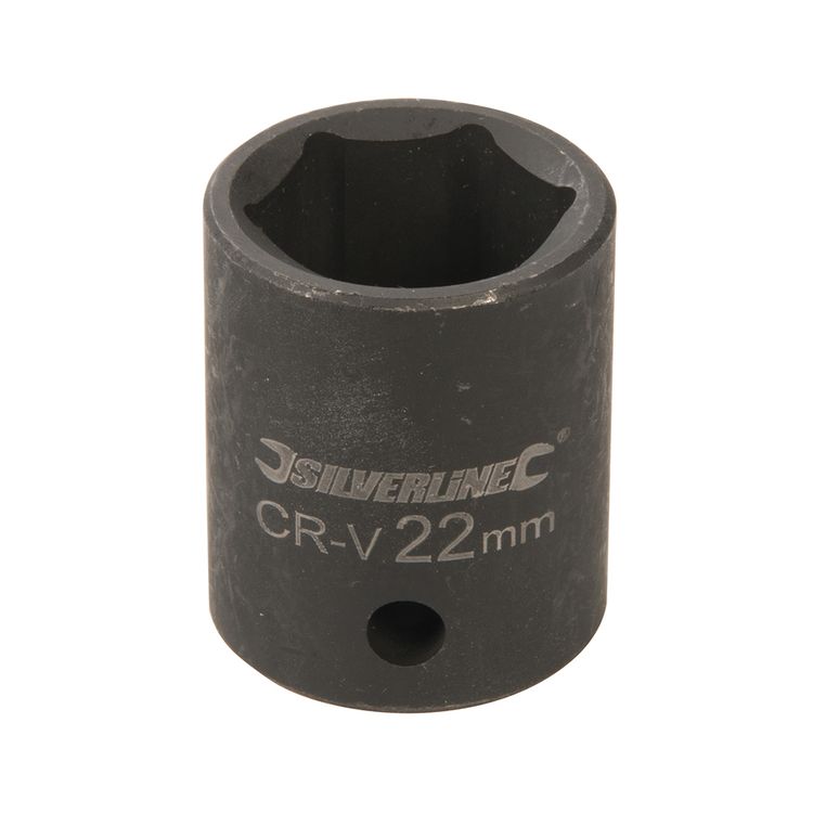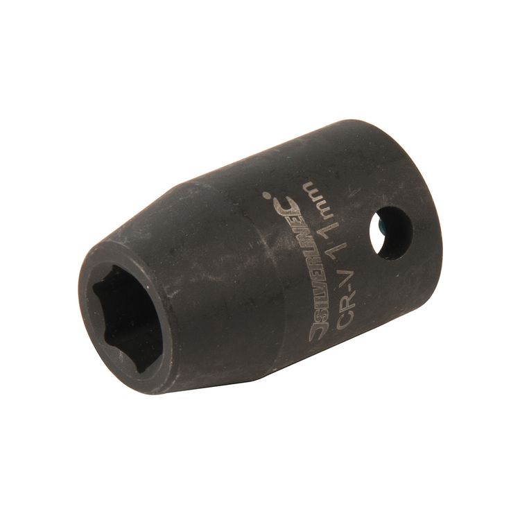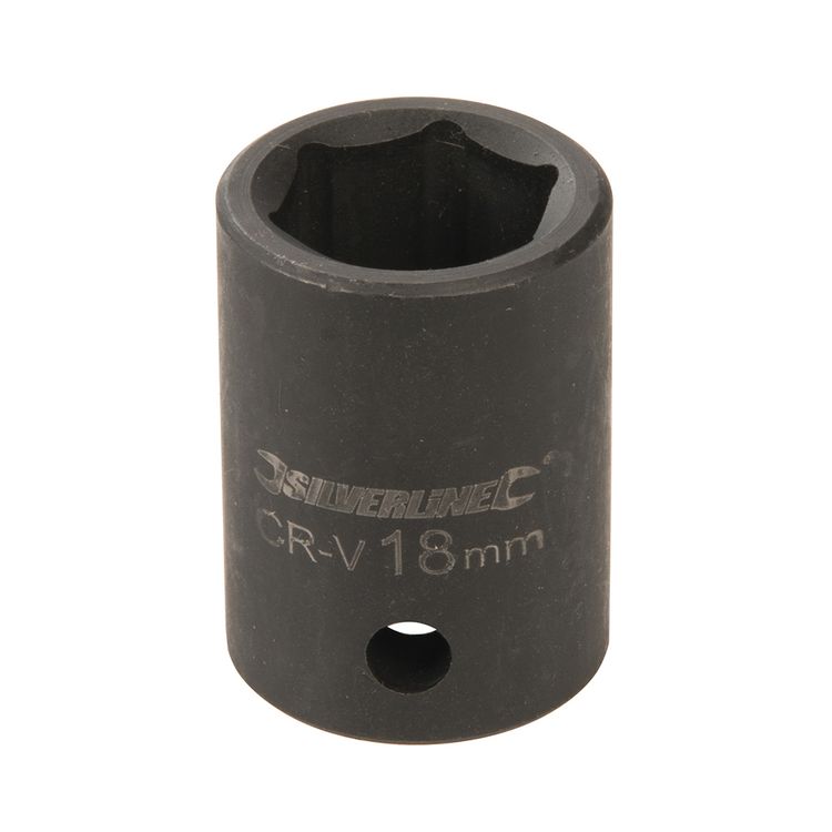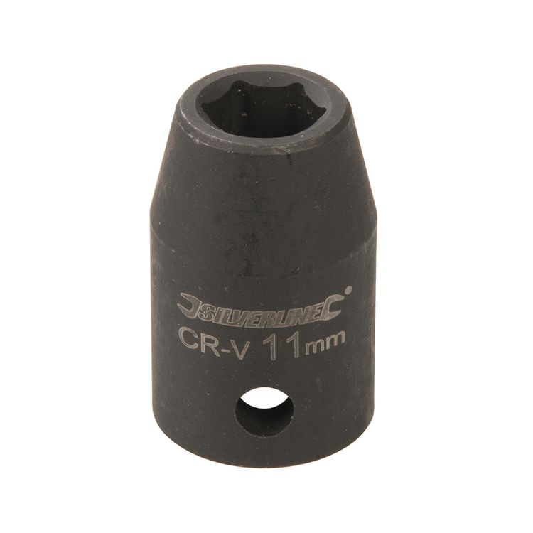 Impact 6-point hex sockets specifically forged for use on powered impact tools. Precision cold-forged, hardened and tempered chrome vanadium steel. Clear, laser-etched sizes and industrial phosphate-coated for tough corrosion resistance. Thick walls provide strength and durability for repetitive high torques. Side wall hole for ball or pin locking to the tool.