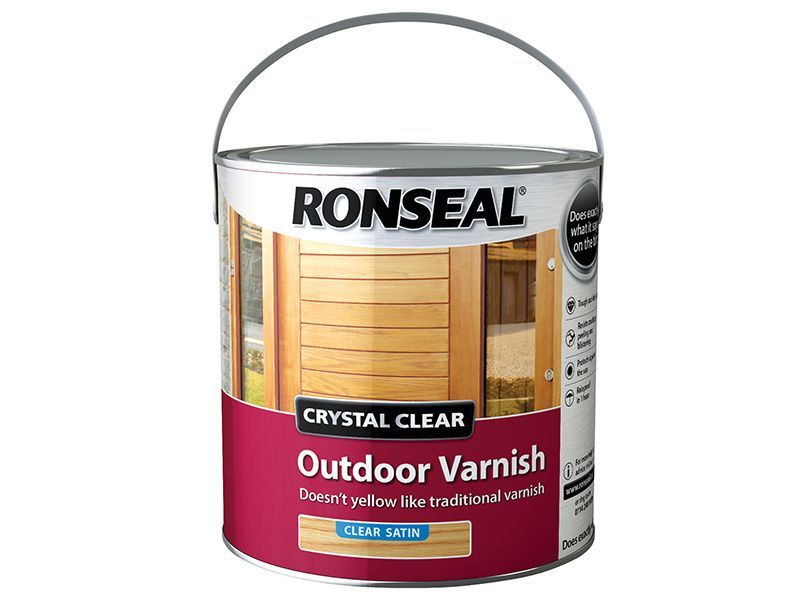 Ronseal Crystal Clear Outdoor Varnish is perfect if you're looking to varnish wood and keep it's natural colour. It'll protect from the weather and doesn't yellow over time like other traditional varnishes. Crystal Clear Outdoor Varnish is rainproof in 1 hour.