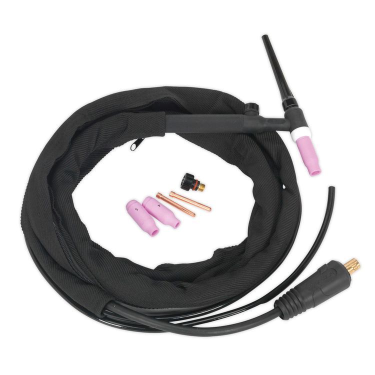 | Contents | TIG Torch with On-Gun Gas Control, Collets, Nozzles |
