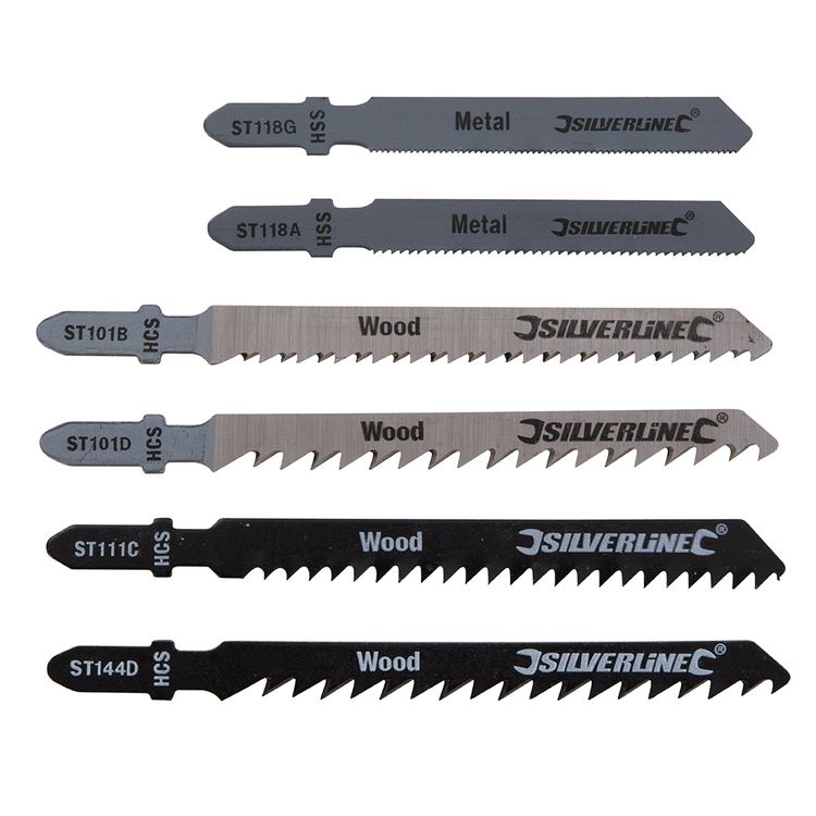 Set of the most popular bayonet fitting jigsaw blades for wood and metal. 4 types of wood blade: ST101B clean, ST101D clean, ST111C fast, ST144D fast cut and 2 types of metal blade: ST118A clean, ST118G clean cut.