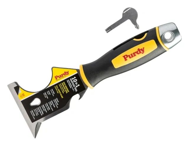 This Purdy® Premium 10-in-1 Multi-Tool is the ultimate sidekick for any professional. Its unique rust-resistant, stainless steel blade provides 10 different uses in one handy tool. Fitted with a non-slip handle for extra comfort.