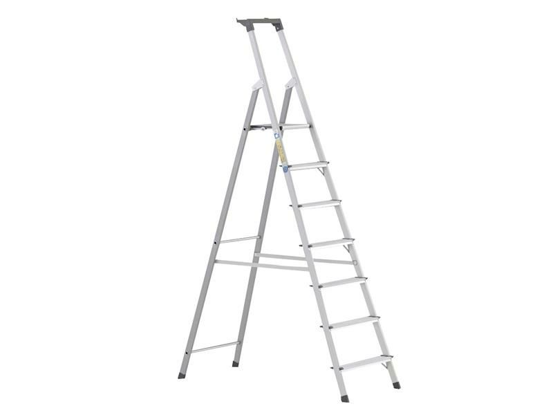 The Zarges Scana S Lightweight Platform Steps provides a high degree of working comfort. It has abrasion-resistant, anodised stiles and a large, practical tray with plenty of space for tools and small items. The large platform features anti-slip ribbing for increased work safety. High-strength Perlon belts prevent splay, from 6 rungs.