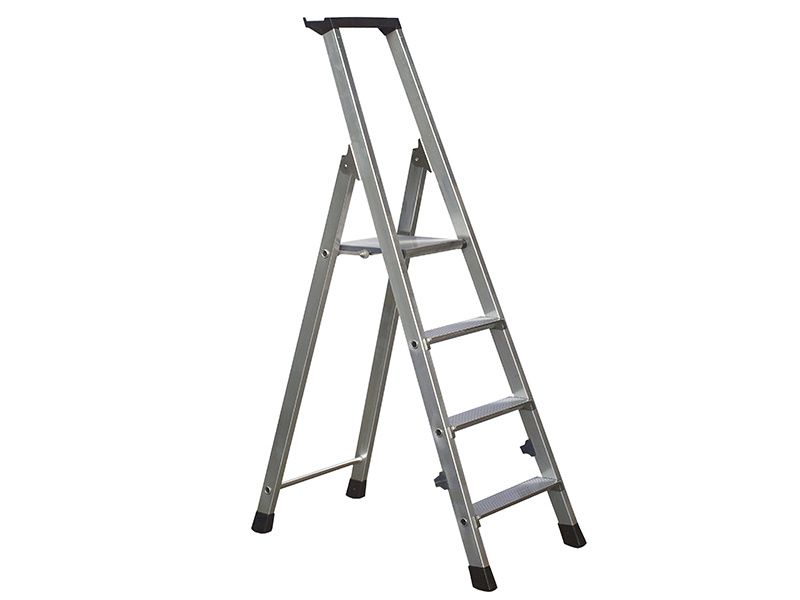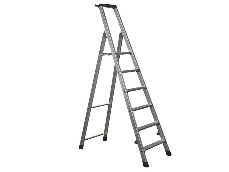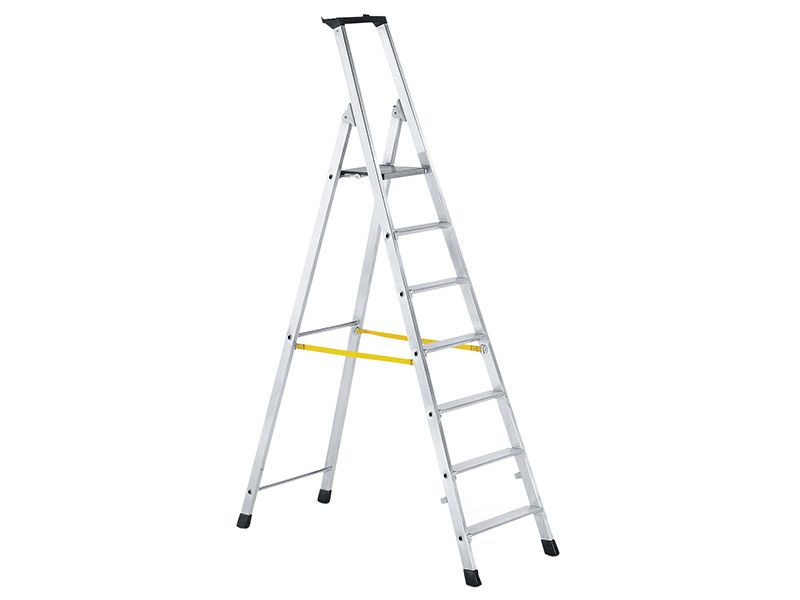 The legs are fitted with non-slip plastic shoes for firm footing. Anti-splay Perlon straps are fitted on 7, 8 and 10 tread ladders. There is also a practical storage tray with plenty of space for tools and small parts.